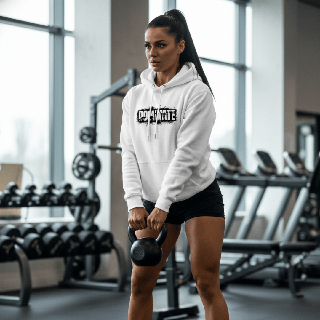 dominate premium white workout hoodieDOMINATE Your Limits | The Ultimate Premium 300 GSM Women Gym Hoodie