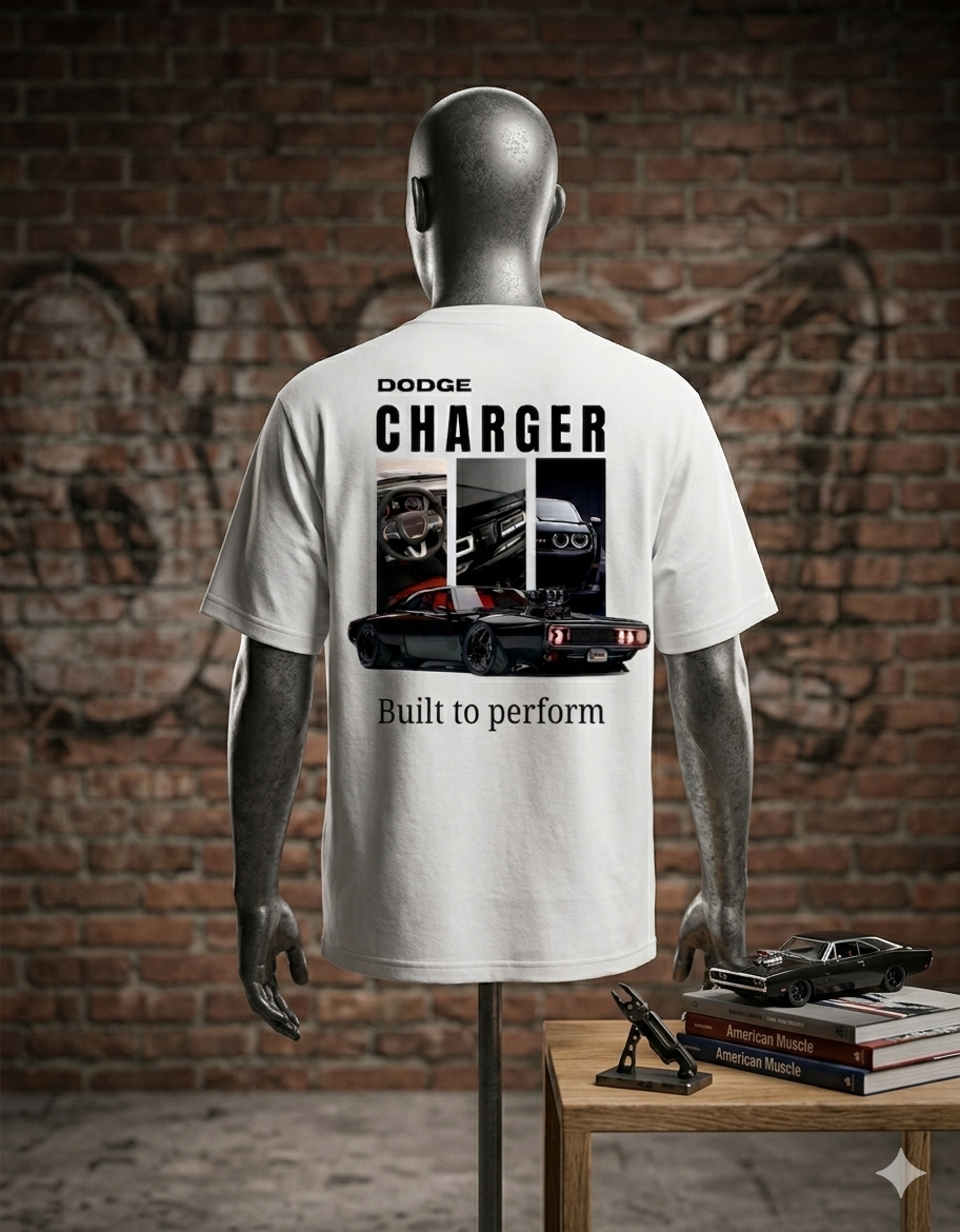 The Dodge Charger isn’t just a car; it’s a statement of force. This limited edition drop from Evoke captures that intensity through a sophisticated back-print design. With a detailed look at the cockpit, the iconic tail lights, and the aggressive front profile—crowned by a full-view wide-body Charger—this tee is a masterpiece for automotive purists.