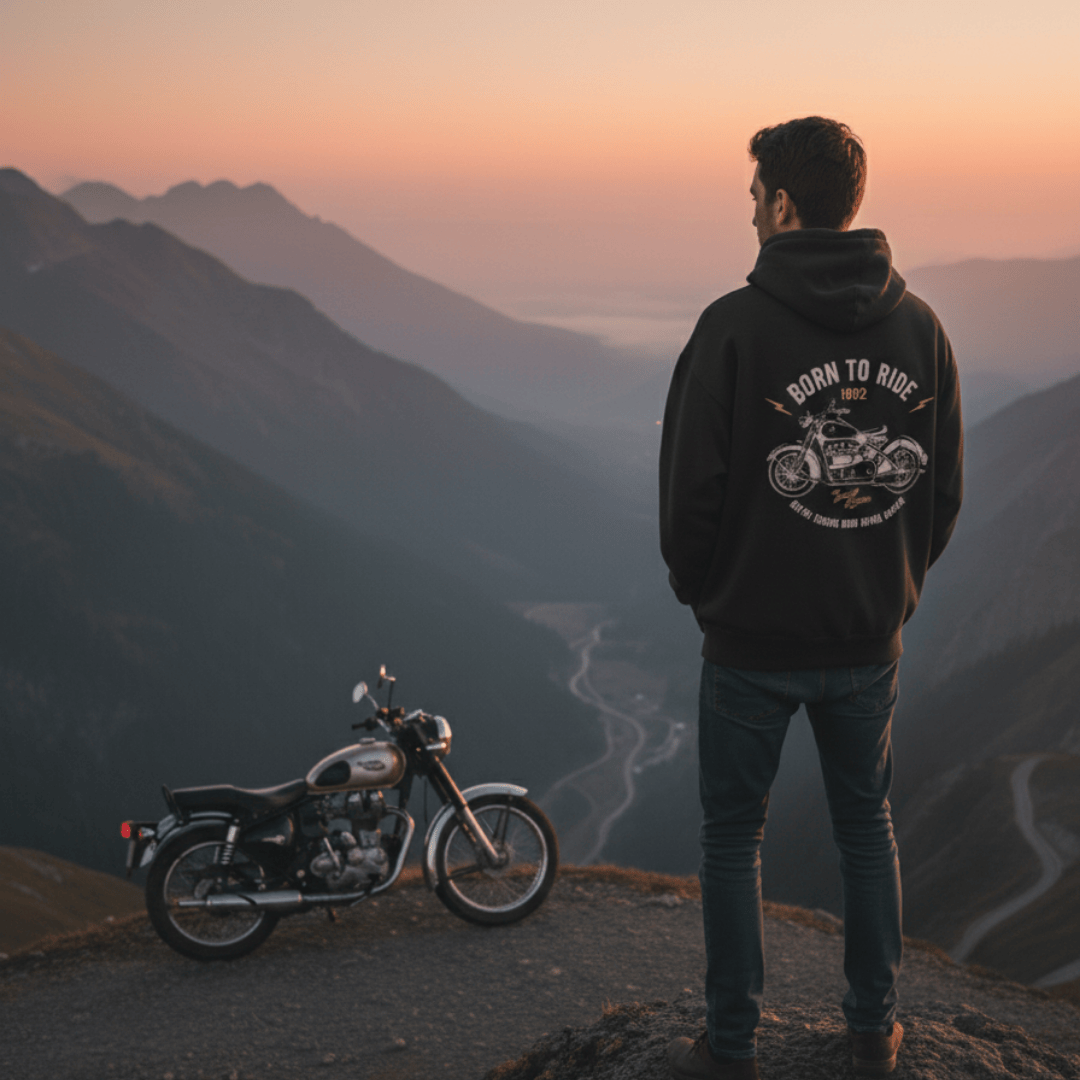 Engineered for Comfort: We’ve used a 400 GSM heavyweight fabric made of 100% pure cotton. This ensures the hoodie is incredibly soft against the skin and provides substantial warmth, making it perfect for breezy evening rides or casual city hangouts, all while remaining breathable so you never feel stuffy.