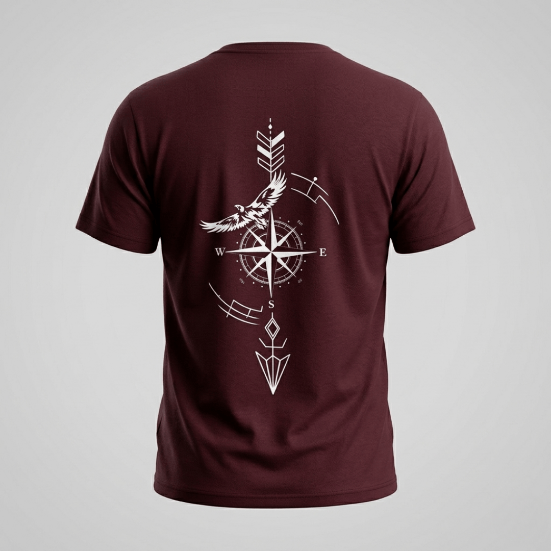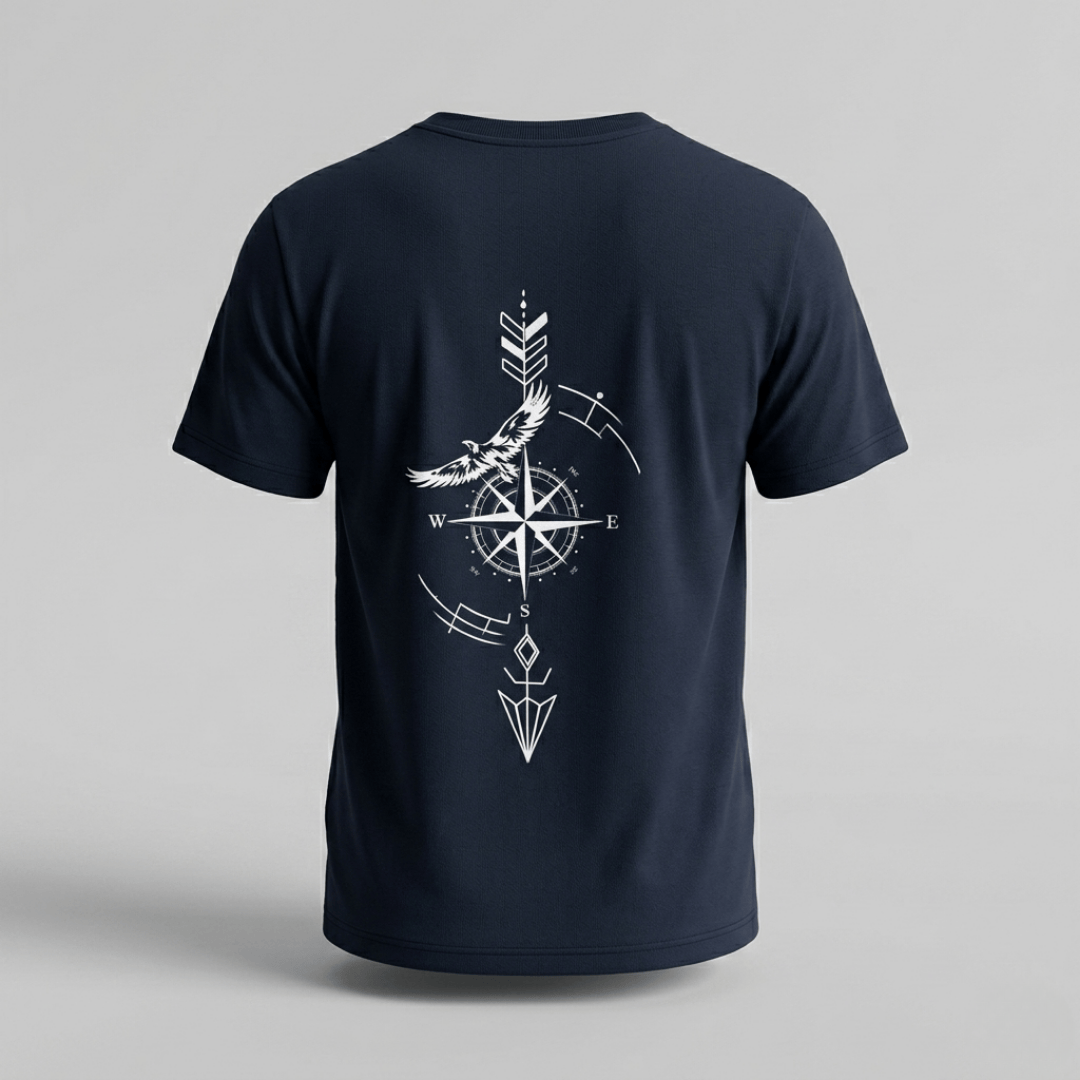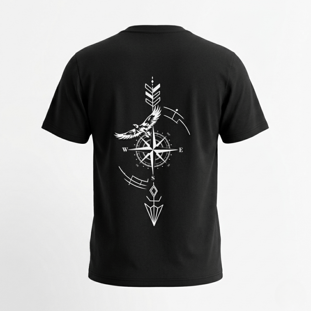 The powerful “White Compass and Eagle Design” is screen-printed with precision on the back, ensuring crisp details and longevity. The ribbed crew neck and clean hems provide a finished, high-quality appearance. We’ve also simplified care for your convenience: Wash inside-out in cold water, dry on low heat, and flip it inside out before ironing. This attention to detail ensures your favorite tee stays in peak condition for longer. Available in sizes S to XXL.
